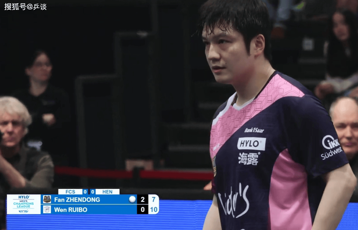 第1盘,樊振东对阵温瑞博,欧冠赛场上两位中国球员进行对决。前四局2-2战平的情况下,小将温瑞博6-1拿下第五局,爆冷先得1盘胜利。